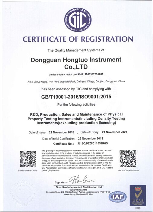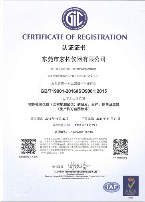 宏拓儀器通過(guò)ISO9001:2015質(zhì)量體系管理認(rèn)證,通過(guò)國(guó)家計(jì)量測(cè)試中心全面質(zhì)量與性能檢測(cè),獲得國(guó)家計(jì)量器具型式批準(zhǔn)CPA證書,參與起草制定: 【GB/T 1040.1-2025塑料 拉伸性能的測(cè)定】、【GB/T 1634.1-2025塑料 負(fù)荷變形溫度的測(cè)定】、【GB/T 44559.1-2024塑料 硬質(zhì)塑料沖孔性能的測(cè)定】 、【GBT 43139-2023鑄造鋁合金液減壓凝固試樣密度檢測(cè)】......等標(biāo)準(zhǔn)。